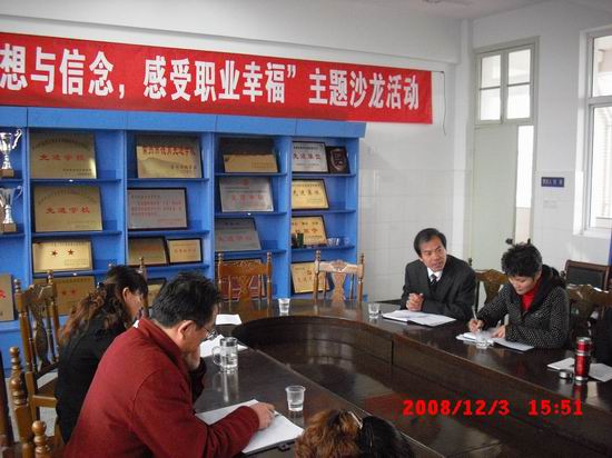 汤国忠校长为大家作总结发言。他以自己多年教育生涯的感性认知及理性思考阐述了对教师职业幸福的理解,他认为:幸福源自态度,什么样的生活、工作态度决定了一个人的幸福感受;幸福源自发现,幸福就在我们身边,我们不是缺少幸福,而是缺少发现;幸福源自思考,教师的职业特殊性决定了教师必须不断思考,思考着是幸福的;幸福源自成长,成长的过程充满幸福,成长的结果收获幸福。