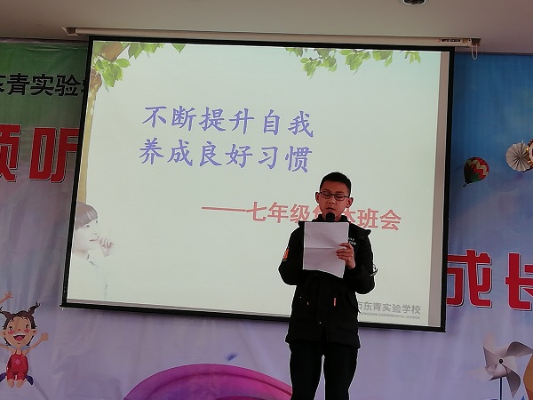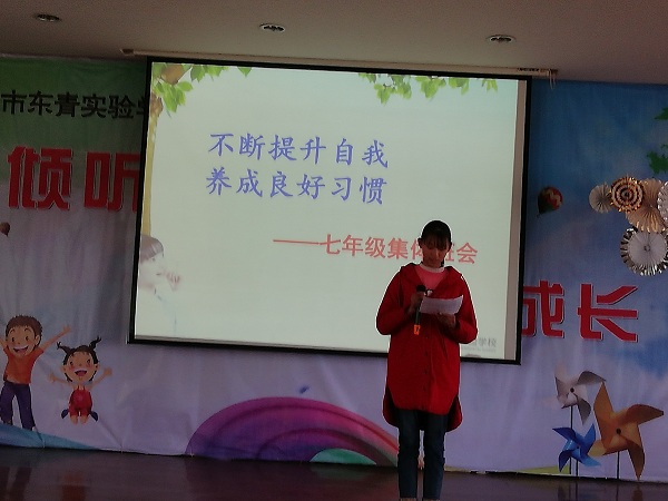一位哲人曾说过:播下一个行为,你将收获一种习惯;播下一种习惯,你将收获一种性格;播下一种性格,你将收获一种命运。这充分说明了习惯的重要。 将来我们能否在未来的社会立足,能否生活得踏实、快乐,真正比拼的不是才艺,而是习惯。昨天下午第三节课,七年级的全体师生集中在一号楼阶梯教室,召开了一次主题为《提升自我,养成良好习惯》的集体班会。