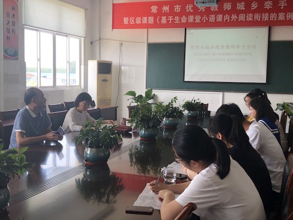 6月30日下午,东青实验学校举行了“常州市优秀教师城乡牵手行动”暨基于生命课堂的课内外阅读衔接的课堂研究的研讨活动。此次活动邀请了“新基础教育研究“专家、二实小副校长高鸣鸿莅临指导,课题组全体成员和学校部分行政领导全程参加了活动。