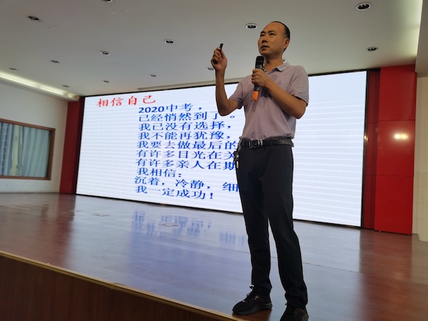 7月15日,这个中考前夕的特殊日子,为了更好地开展中考工作,我校九年级全体师生在阶梯教室召开了中考心理团辅暨动员大会。本次活动由课程指导中心主任姚军华主持。