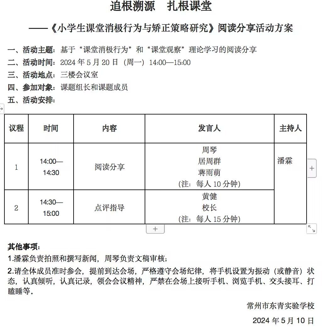 《追根溯源,扎实课堂》——《小学生课堂消极行为与矫正策略研究》阅读分享活动方案