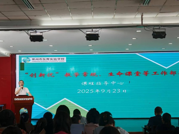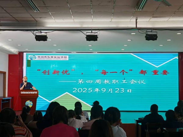 为统筹推进“创新优”工作落地见效,明确国庆假期及后续重点任务方向,2025年9月23日中午,常州市东青实验学校在四楼阶梯教室召开教职工周工作会议。会议由商骏涛校长主持,全体教职工参会,围绕“创新优”,系统部署近期重点工作。