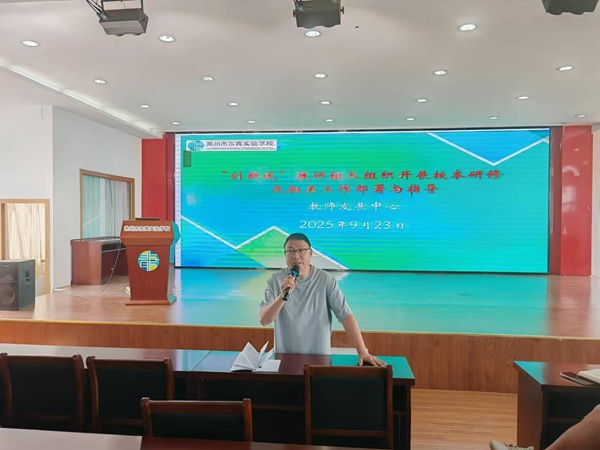 教师发展中心黄健副主任结合区教师发展中心于纯老师的指导意见,开展 “创新优”校本研修专题指导。他先向教研组长介绍校本教研的多元形式(如跨学科研讨、小初衔接教研等)与实施注意点,分享其他学校成熟的研讨主题案例。随后,布置具体任务:要求各教研组结合学科特点与教学需求,集中商讨本教研组校本教研的形式与主题,形成可落地的方案,推动校本教研高质量实施,为“创新优”打下坚实基础。